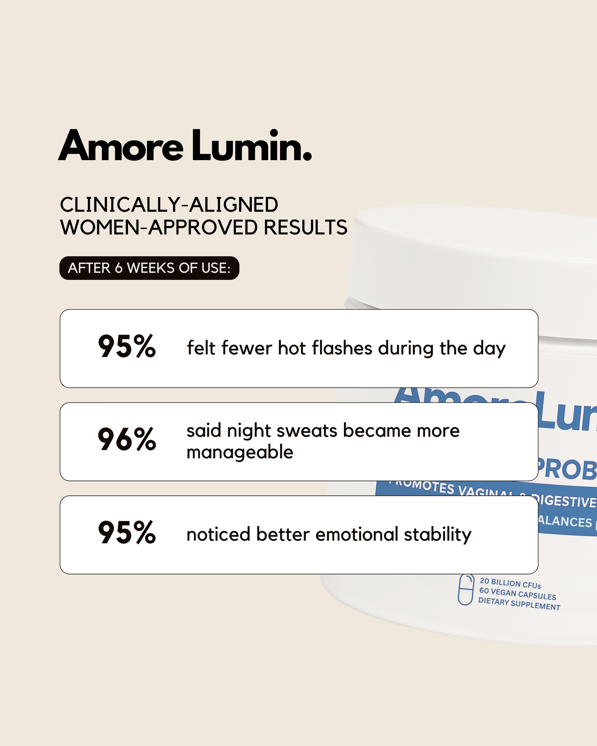 If you are pregnant, breastfeeding, taking medication (especially hormone-related treatments), or under medical supervision, please consult your healthcare provider before using this menopause supplement. Do not exceed the recommended dose. Discontinue use if any irritation or unexpected reaction occurs. Keep out of sight and reach of children. Do not use if the seal is broken.
